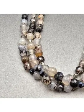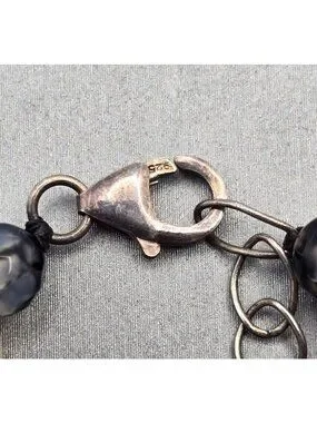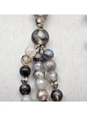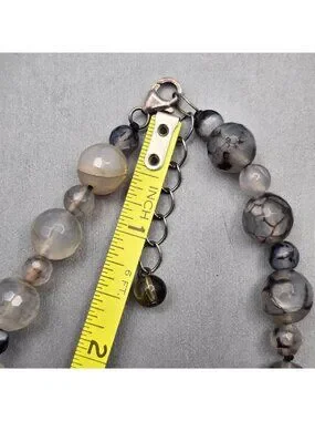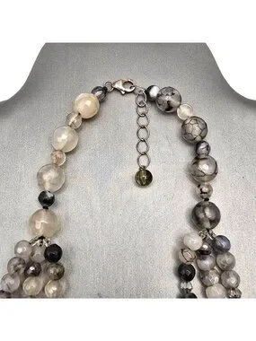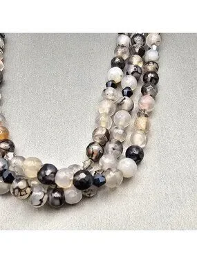 Multi-Strand Dragon Vein Agate Beaded Necklace 16" 925 Silver Clasp Undyed