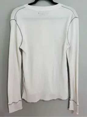 Old Navy Thermal Henley Top M White Waffle Knit Exposed Seam Grunge Y2K