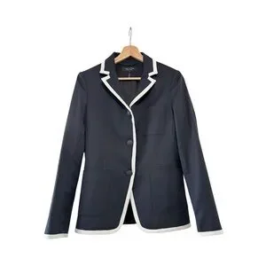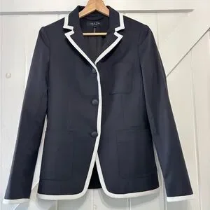 Rag & Bone Redgrave Piped Navy Wool Blend Blazer White Trim 3 Button Preppy 2
