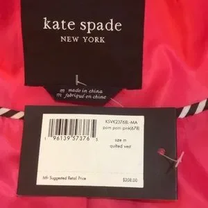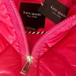 NWT KATE SPADE QUILTED VEST IN BRIGHT PINK SIZE M POM POM PINK BARBIE PINK