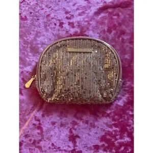 Vince Camuto Sequin Cosmetic Bag Makeup Pouch Rose Gold