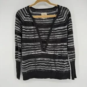 Revolve Chaser Sweater 100% Linen Women's XS Lace Up Striped Space Dye