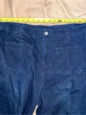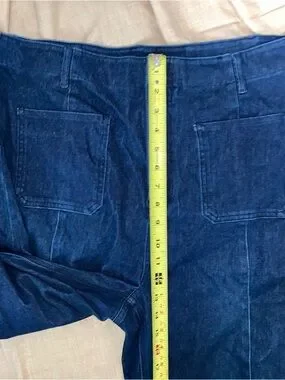 Brand new with tags Halara wide leg denim pants in a flattering high-rise fit. Dark wash with structured seams and front patch pockets for a clean, modern look. Back pockets are faux (non-functional) for a smoother silhouette.