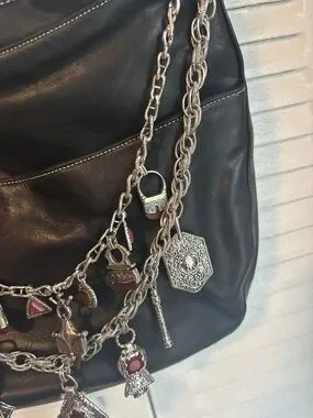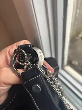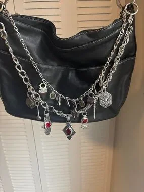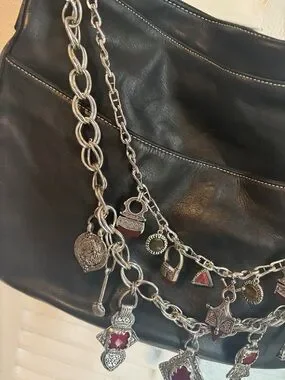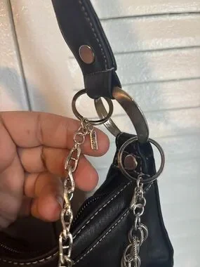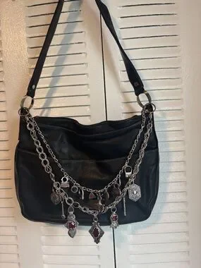 Vintage Danier Black Leather Bag + Zara Charm Chains Y2K Luxe
