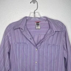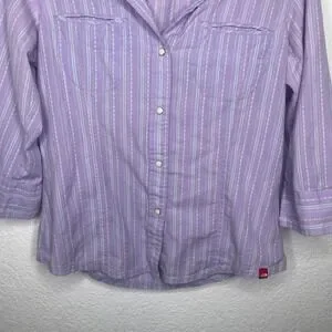 The North Face Womens 3/4 Sleeve Striped Button Down Shirt Purple Medium M