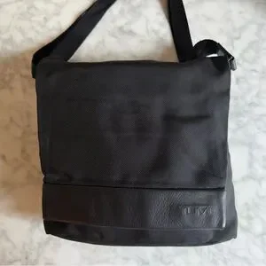 Men's TUMI Black Crossbody Laptop Messenger Bag Leather and Nylon Magnetic Close