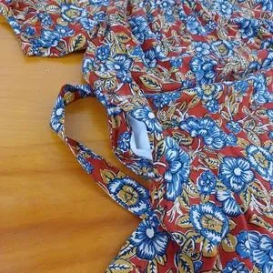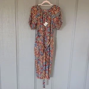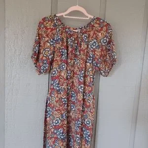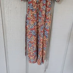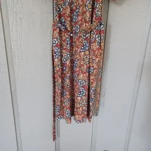 Faherty Carmel Print Linen Blend Midi Dress Size XS Tie Waist Floral Boho Button Front