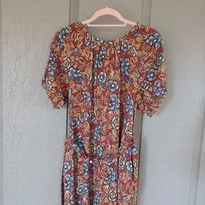 Faherty Carmel Print Linen Blend Midi Dress Size XS Tie Waist Floral Boho Pocket