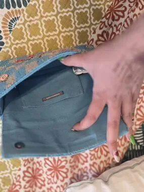 Anthropologie Blue Beaded Cherry Appliqué Shoulder Bag