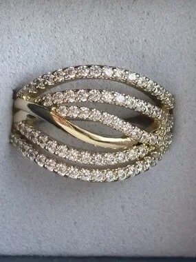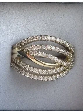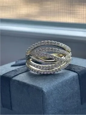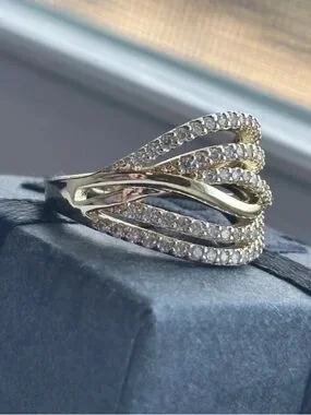 Gold Plated Multi Band Pave CZ Ring Size 6 Layered Wrap Statement Ring