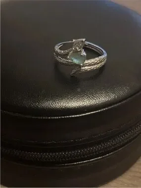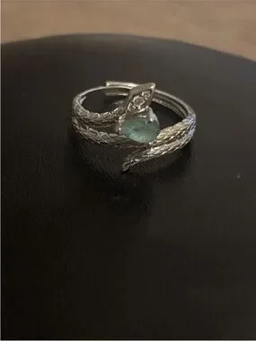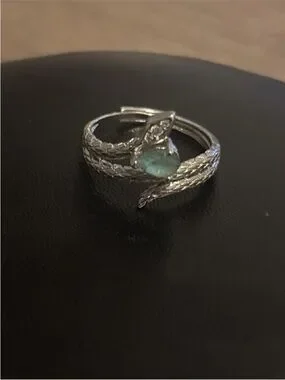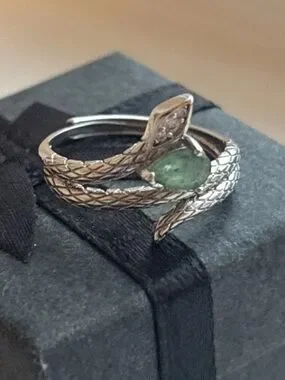 Stunning white gold plated snake wrap ring featuring a natural green gemstone and sparkling accent detail ✨