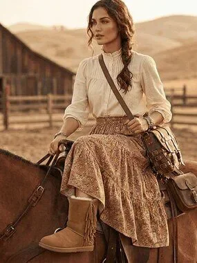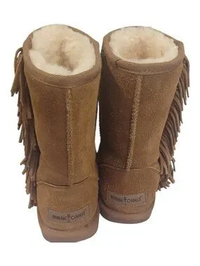 Minnetonka Camel Brown Suede Moccasin Booties with Fringe Size 6