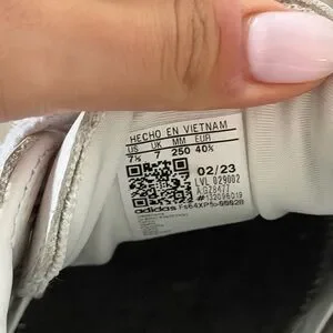 Retro-inspired adidas trainers with white leather upper and black stripe accents. Beige suede overlays add subtle contrast. Padded collar and lace-up front for a secure fit. Clean, versatile style for casual wear.