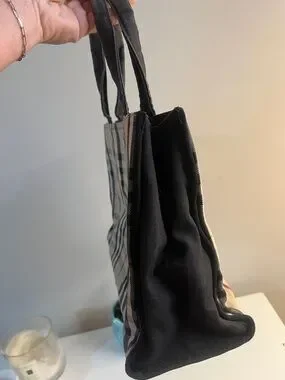 Project Burberry Beige Plaid Canvas Tote with Black Handles