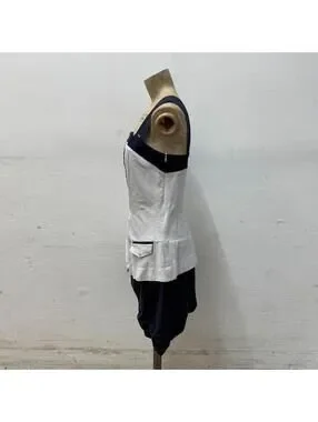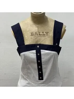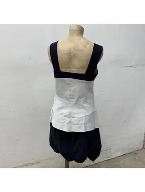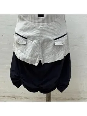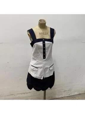 This authentic archival piece from La Mode Est À Vous is a definitive example of Early 2000s French Avant-Garde and Cyber-Y2K aesthetics. Rendered in a high-contrast obsidian and paper-white palette, the dress features a complex, structural design with a tailored pinstripe bodice. The garment is engineered with wide shoulder straps, a central button-down placket, and unique "faux-vest" layering with functional flap pockets and obsidian piping. Finished with a kinetic, voluminous "bubble" hemline and industrial-style hardware, it is a quintessential "it-girl" grail for collectors of experimental archival streetwear.
