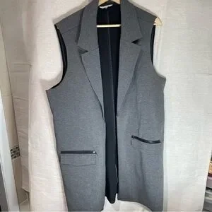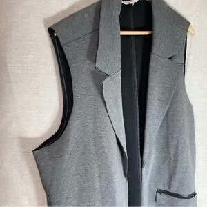 Stylish gray vest. Sleeveless design. Features front pockets with zippers. Perfect for layering. Oversized m or large