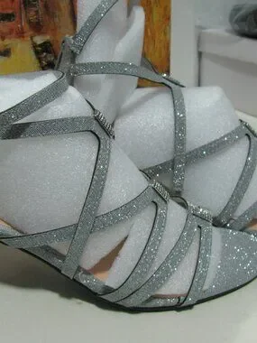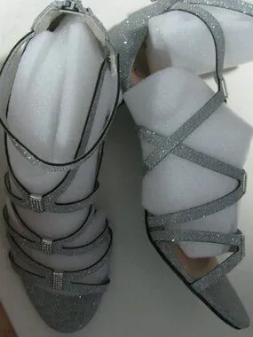 Bella Vita glitter sandals in size 8 1/2 M. New in box, these sexy strappy sandals have an ankle strap and zip in back. Sexy and perfect for date night, weddings or any special occasions. Style name Karlette. Nonslip sole.
