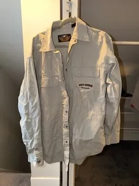 Harley Davidson mens gray/beige button down collared shirt XL tall