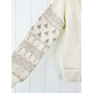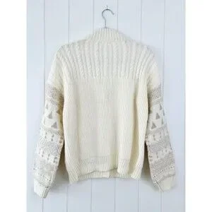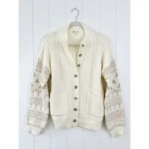 Hem & Thread Ivory Super Soft Knitted Aztec Cardigan Boho Southwestern Sweater S
