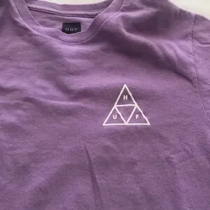 Lavender HUF T-shirt with triangle design on front and back 100% cotton unisex