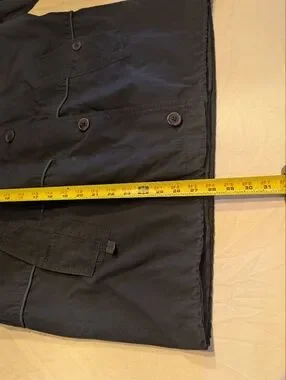 2/40$ Vintage Black Hooded Utility Jacket with Red Trim and Yellow Cuff