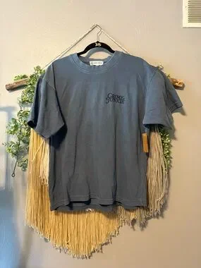 short sleeve crewneck tee in dusty blue. Lightweight cotton with a relaxed, everyday fit. Subtle chest logo for understated style. Easy to pair with casual outfits for a laid-back look.