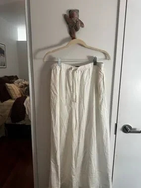 Carbon38 White linen Blend Wide Leg Pleated Drawstring Pants - Size L