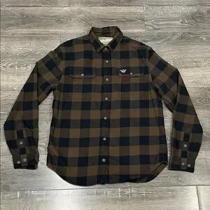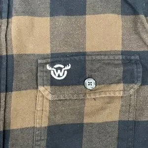 Moosejaw Men's Brown and Black Plaid Shirt Size Medium