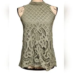 High neck sleeveless lace overlay blouse by Rewind.