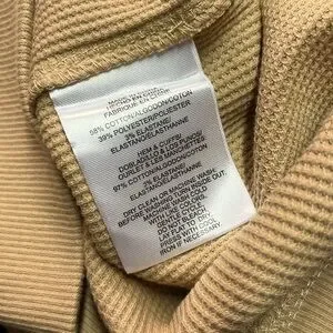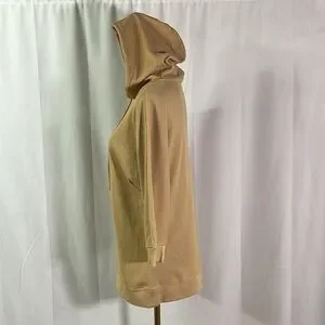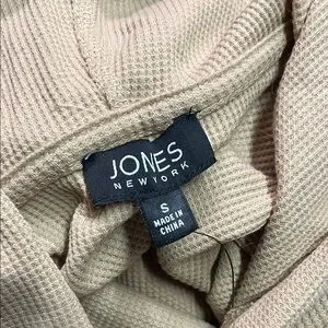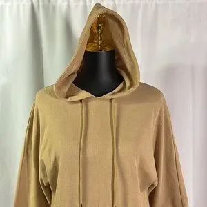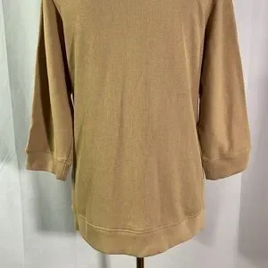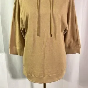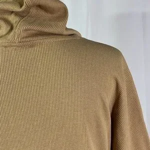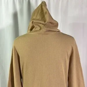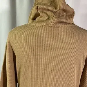 Jones New York Camel Tan Waffle Knit Thermal 3/4 Sleeve Hooded Pullover