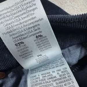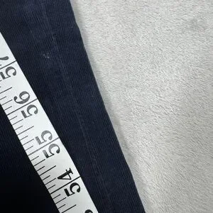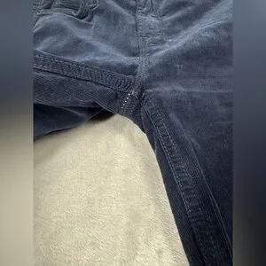 Night sky wash on this mid-rise straight leg with an ankle-length inseam and a frayed hem. Cotton blend, some stretch. It's cut from soft corduroy in a deep blue shade. Zipper fly. Raw hem, retro, hippie, contemporary
