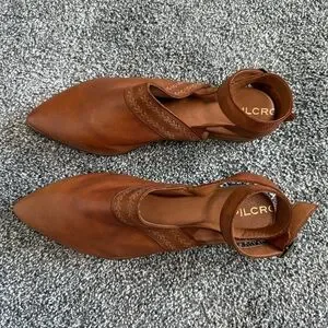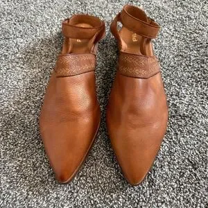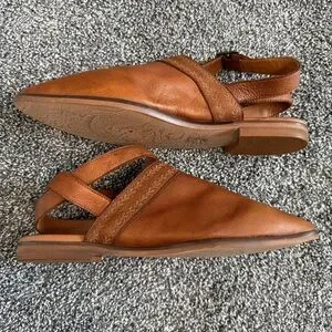 These Pilcro from Anthropologie leather ankle strap flats are like new! There are minor marks but otherwise these were never worn outside. Beautiful chocolate brown leather. Wrap around, adjustable ankle strap. Pointed toe. Size 9. No box.