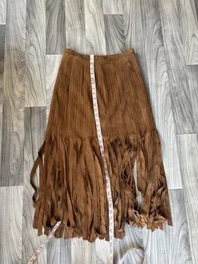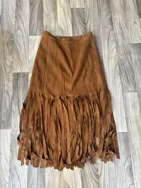 Polo Ralph Lauren 4 Brown Western Fringed Suede Midi Skirt