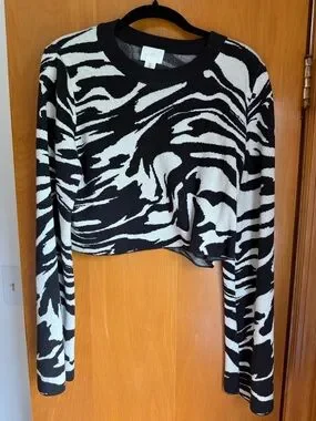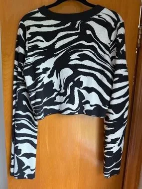 H&M Black and White Zebra-Print Cropped Sweater