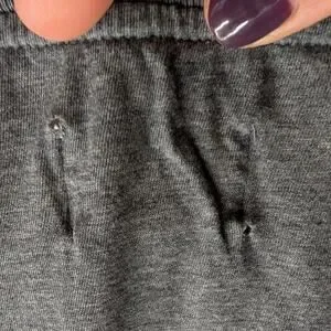 Condition: Good pre-owned condition. Two small holes at tag attachment point at hem — visible in photos and reflected in price.