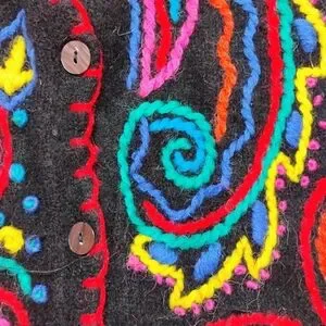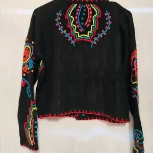 Vtg Kitty Hawk Vivian Wang Small Multicolor Cardigan Sweater Art Bold Angora L