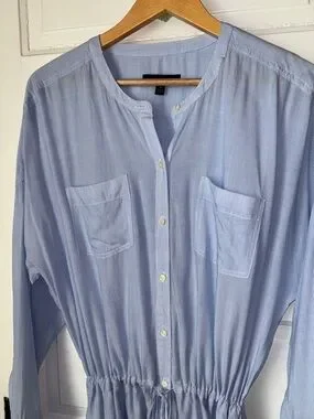 BANANA REPUBLIC BUTTON FRONT COLLARLESS SHIRT DRESS