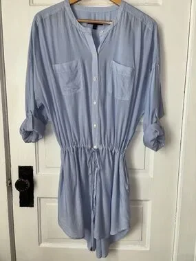 Banana Republic striped shirt dress. Long sleeve and button front with no collar. Sleeves have roll tabs and the waist has a cinch tie. Very soft and lightweight.