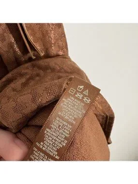 SKIMS Women Plus Size 3X Brown Metallic Logo Mesh Foil Mini Slip Cami Dress.