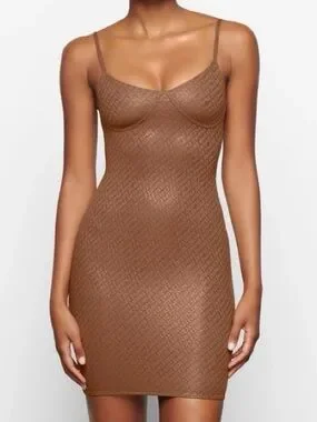 SKIMS Women Plus Size 3X Brown Metallic Logo Mesh Foil Mini Slip Cami Dress NWT