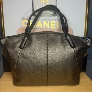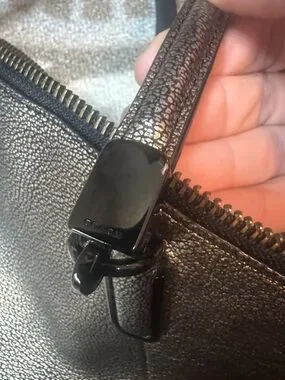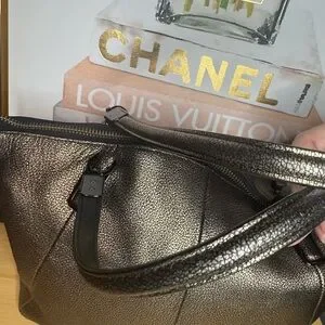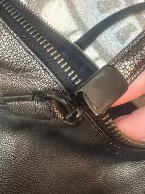 Coach Kelsey Metallic Gold Crackle Leather Tote Bag With Zipper Closure-