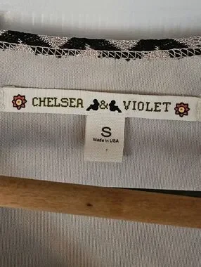 Chelsea & Violet Black and Tan Chevron V-Neck Dress. S