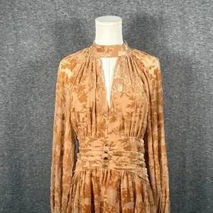Parker Womens Textured Cutout Front Mini Dress Brown Sugar Floral Burnout Size 6