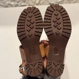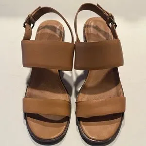 Chic and versatile tan sandals. Ideal for casual outings. Comfortable fit with adjustable strap. 3 inch heel