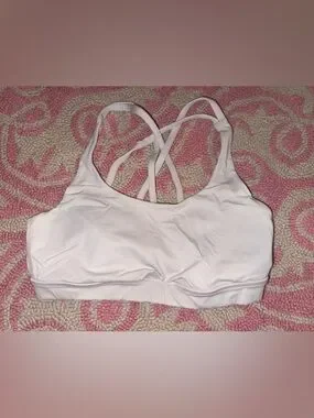 Soft white strappy bralette with a crossed-back design for light support. Smooth, breathable fabric provides comfortable all-day wear. Seamless look under clothing and gentle elastic band for secure fit. Simple, versatile white style for daily use.