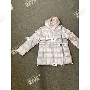 Beautiful Lands End thick pearl pink winter jacket. One small pen mark on front and back (see photos). See photos for measurements