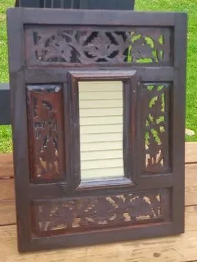 Pier 1 Imports Jodhpur Hand Carved Wood Wall Mirror Rustic Boho India