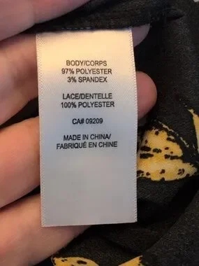 Cleo, Floral, Flowers, Yellow, Black, White, Lace, Sheer, Mesh, Inset, Long Sleeve, Cuffed, Button, Keyhole, Mock Neck, High Neck, Pleated, Flowy, Chiffon, Professional, Career, Office, Work, Business Casual, Feminine, Romantic, Boho, Spring, Summer, Fall, Dark Floral, Patterned, Blouse, Top, Shirt, Medium, M, Classic, Trendy, Modern, Dressy.