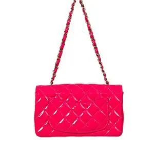 Chanel Patent Leather Quilted Interlocking CC Classic Flap Mini Shoulder Bag Neon Pink