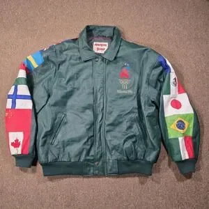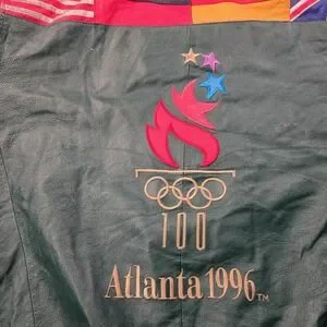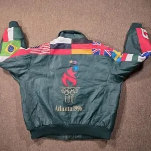 Vintage American Toons Olympics Leather Jacket XL 1996 Atlanta Embroidered Flags